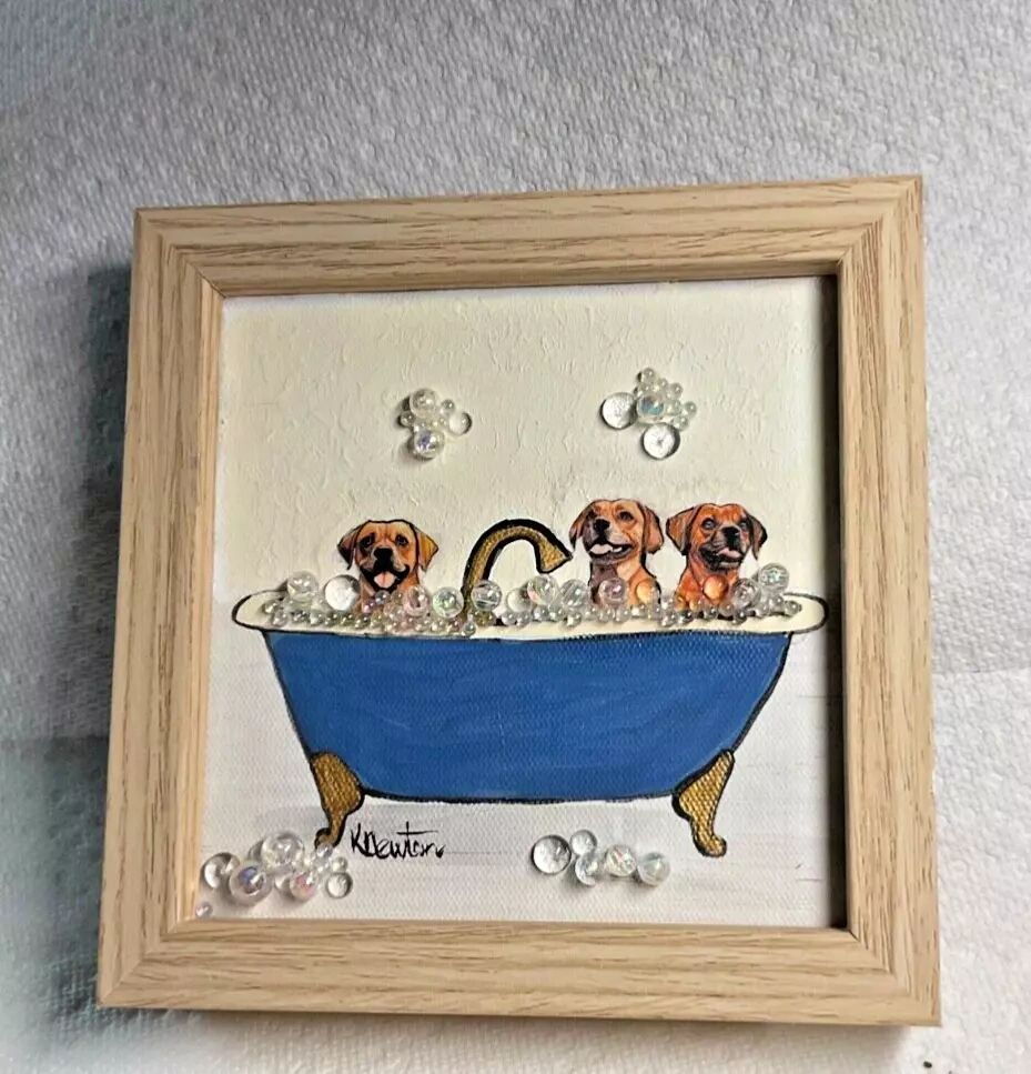 We fund our rescue efforts by reselling unique treasures from estate sales on eBay and custom dog-themed artwork created by our President, Kathy Newton. Every purchase supports our mission to save death row dogs and provide vital veterinary care.
